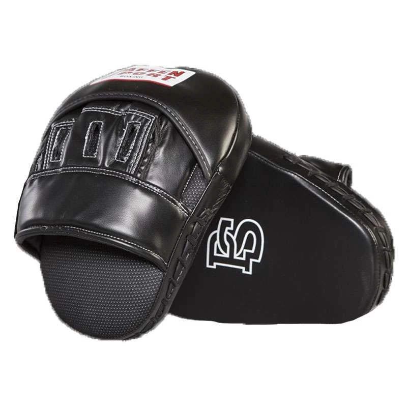 Made of durable artificial leather, pre-curved and with focus print.For training under contest conditions in boxing, kickboxing, K1, and Muay Thai.